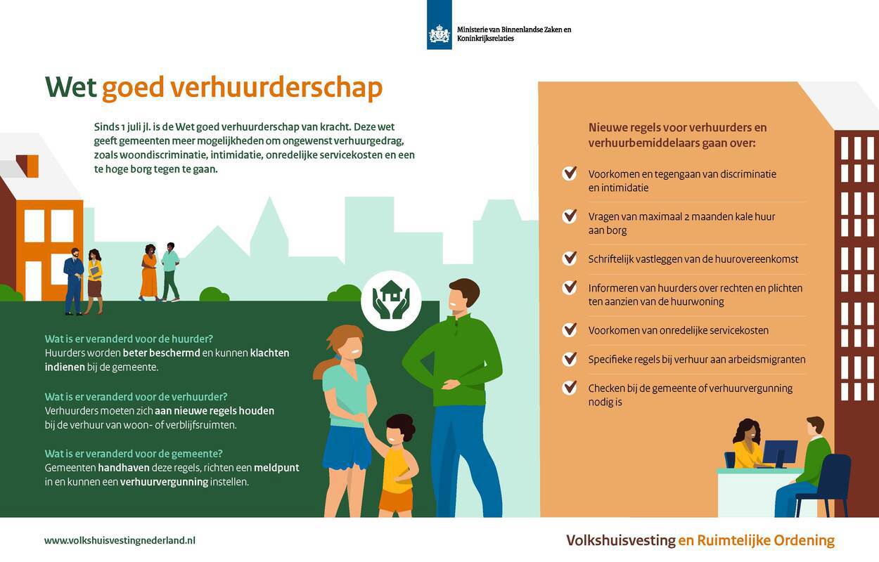 De meeste huurders zijn blij met hun verhuurder. Maar soms gaat het niet goed. De Wet goed verhuurderschap geeft verhuurders duidelijkheid, huurders bescherming en gemeenten de mogelijkheid om op te treden als dat nodig is.