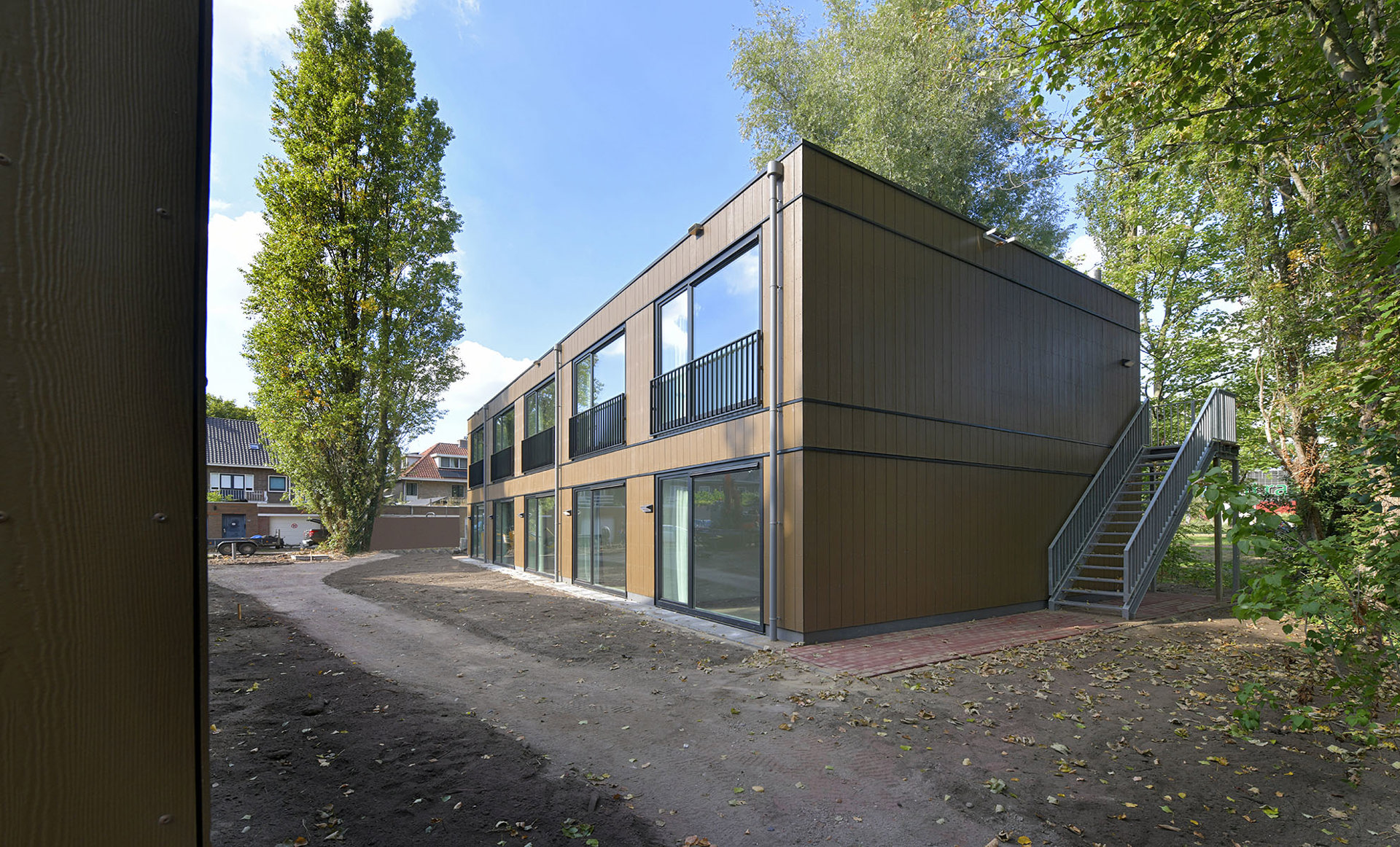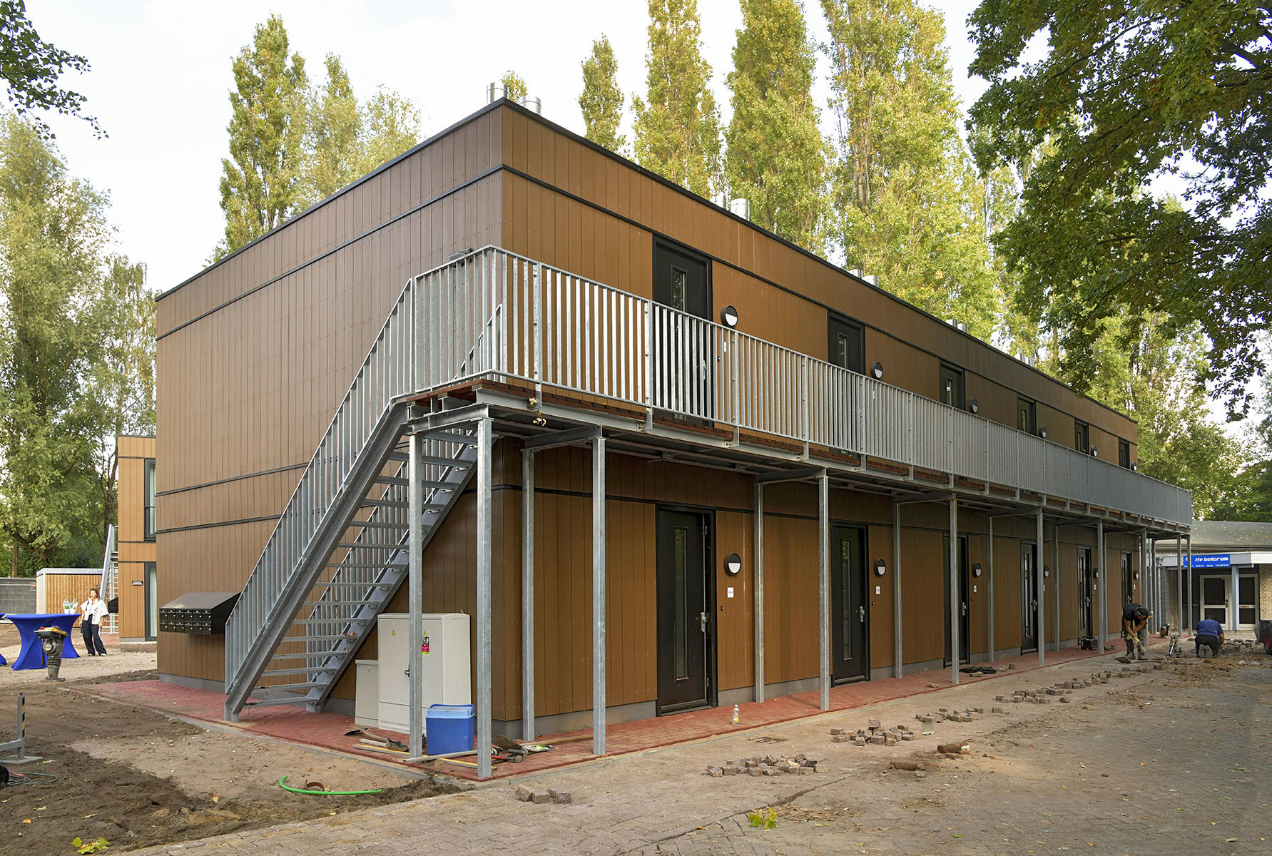De woningen zijn modulair gebouwd. Dit betekent dat ze in een fabriek zijn gebouwd en op de bouwlocatie in elkaar gezet. Het is een snelle en efficiënte manier van bouwen, met dezelfde kwaliteit als permanente woningen. Deze woningen blijven hier minimaal 15 jaar staan.