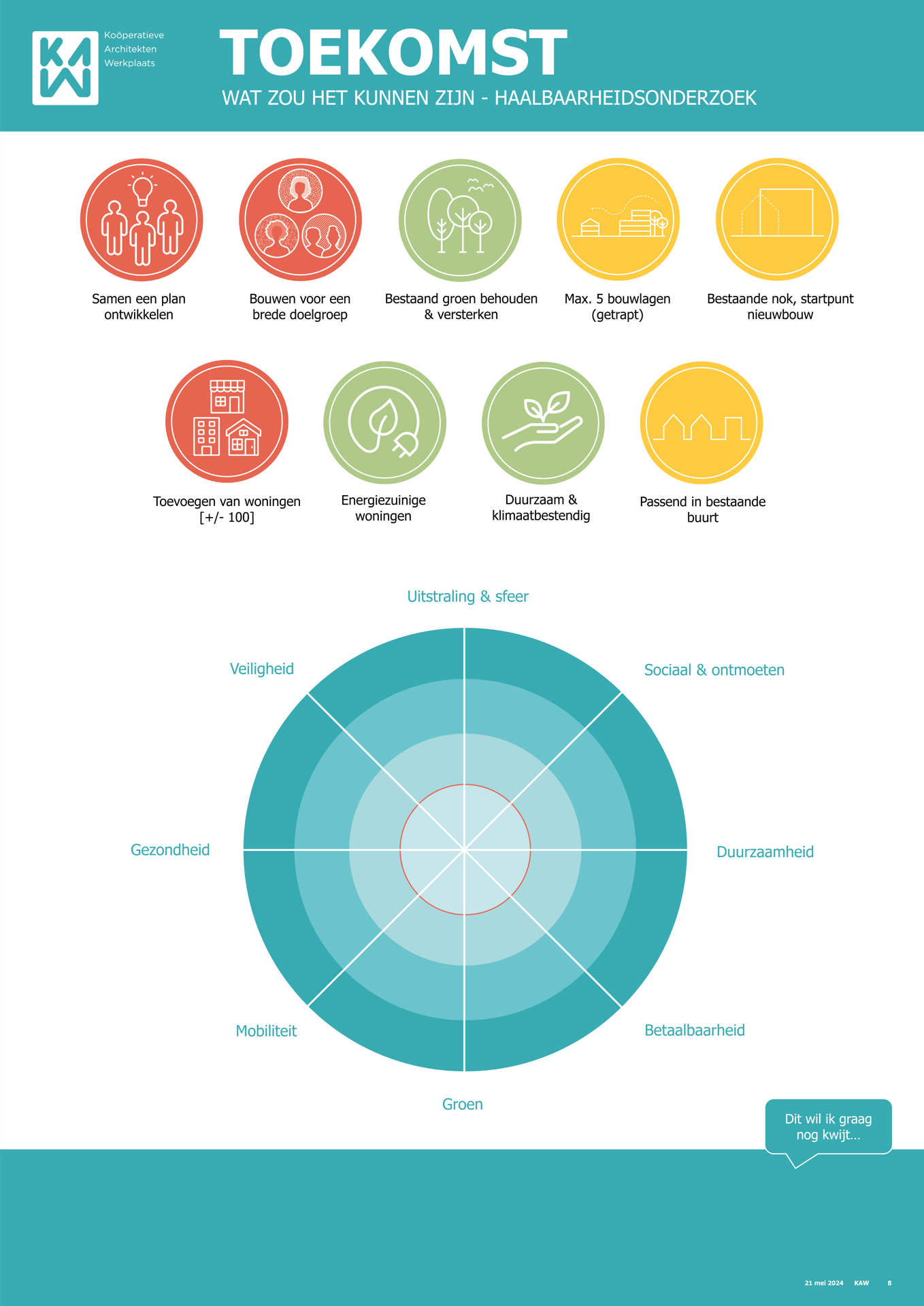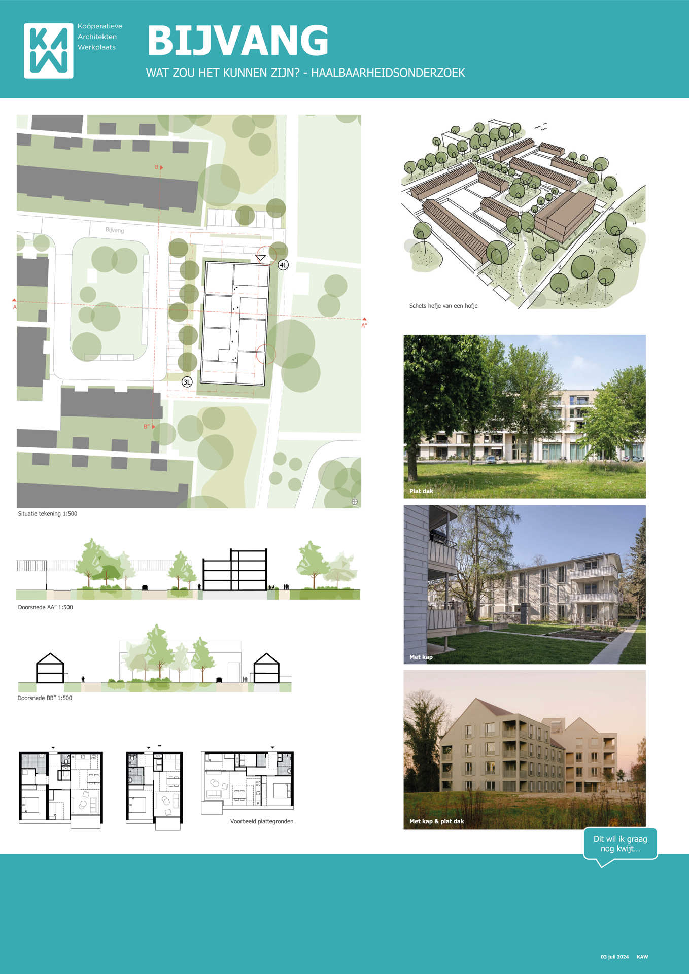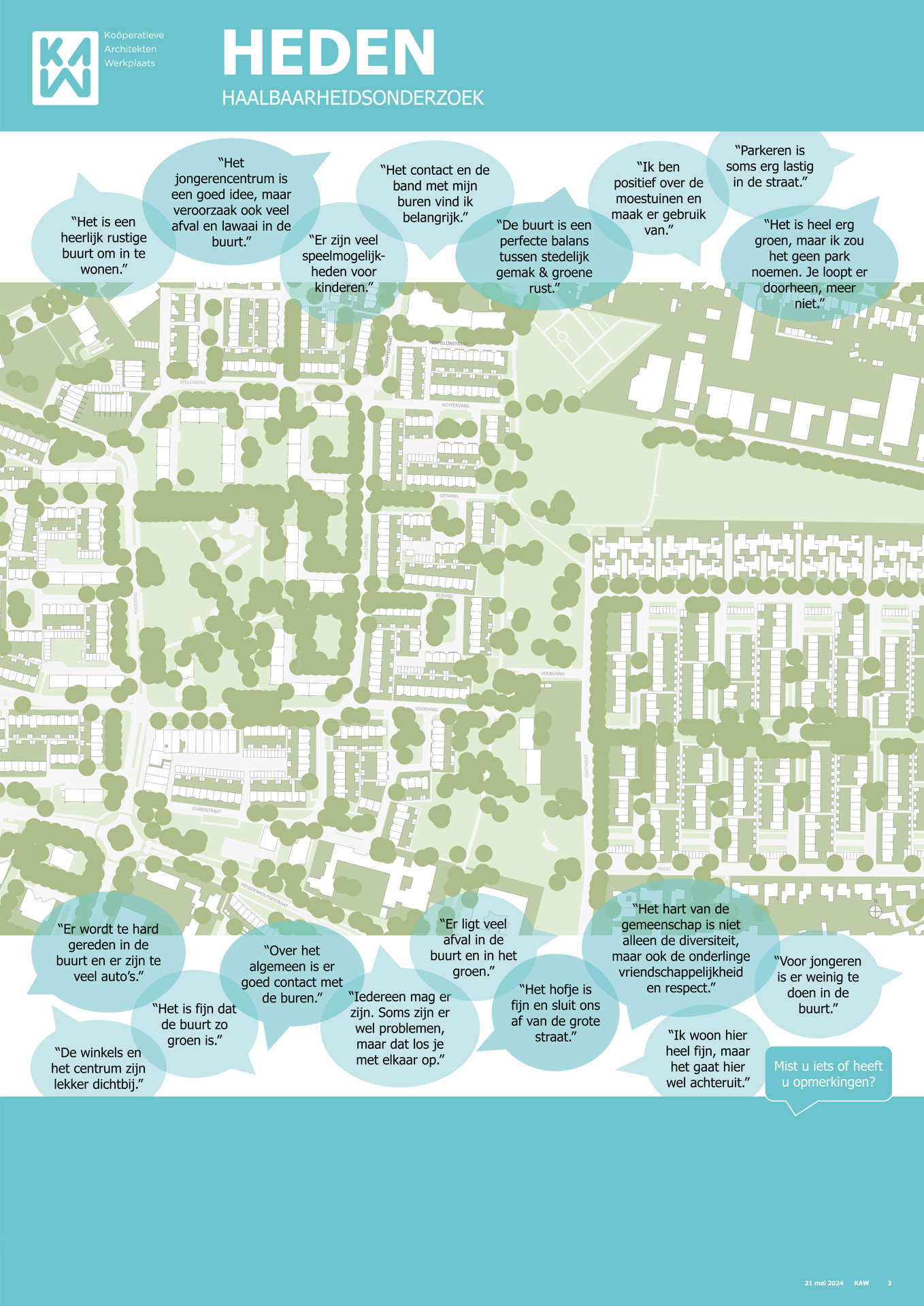 Samen met buurtbewoners, de gemeente, KAW architecten en Maas-Jacobs Vastgoed hebben we gesproken over de toekomst van de buurt: het gebied in en rondom de woningen aan de Achtervang, Uitvang, Bijvang en Voorvang in Breda. In 2024 vond hier een haalbaarheidsonderzoek plaats naar de mogelijkheden om gezinswoningen te vervangen door appartementen in verschillende prijsklassen, waarbij ook de kwaliteit van het gebied verbeterd kan worden. In het onderzoek is gekeken naar manieren om hitte en wateroverlast tegen te gaan en de groenstrook beter in te richten. Tevens kan de nieuwbouw een voorkant krijgen aan de groenzone tussen Brabantpark en Heusdenhout, waardoor de sociale controle in de groenzone verbetert.