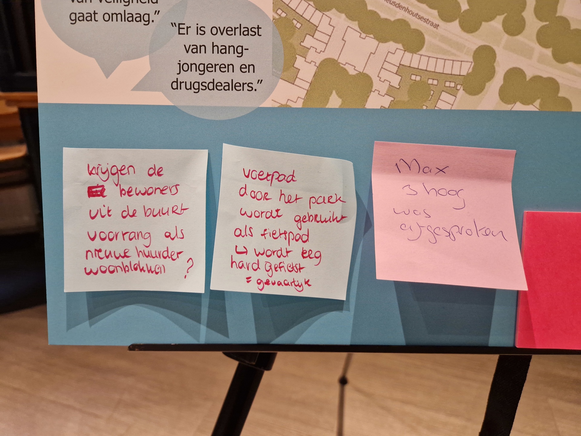 Op 16 april 2024 hebben we eerst de bewoners geïnformeerd die in de woningen wonen waar we de bouw van nieuwe woningen onderzoeken. Tijdens informatiemarkten op 21 mei en op 3 juli 2024 hebben we met bewoners uit de rest van de omgeving gesproken over de mogelijkheden om de buurt te verbeteren en toekomstbestendig te maken. En wat daarin voor de bewoners belangrijk is. Samen is er gekeken naar de openbare ruimte, veiligheid, de leefbaarheid rondom de woningen, de parken en de groenstroken. Maar ook naar de mogelijkheden voor het toevoegen van verschillende soorten woningen en voorzieningen. Er is namelijk een groot tekort aan woningen en behoefte aan meer variatie in soorten woningen, met name gelijkvloerse woningen. Op 13 november is een concept stedenbouwkundig plan gepresenteerd aan de buurt.