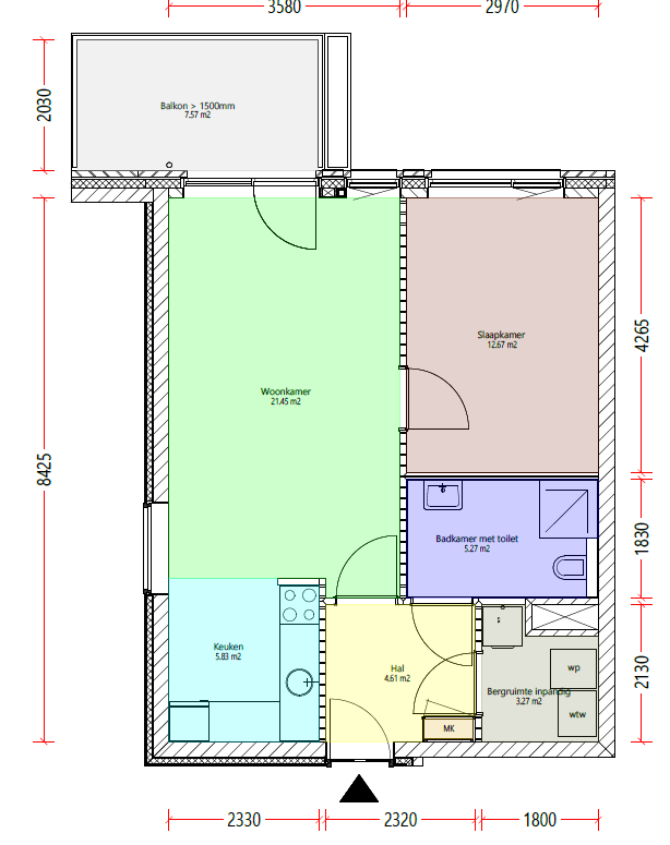 - De appartementen hebben allemaal een woonkamer met open keuken, slaapkamer(s), badkamer, gang, toilet en eigen berging.