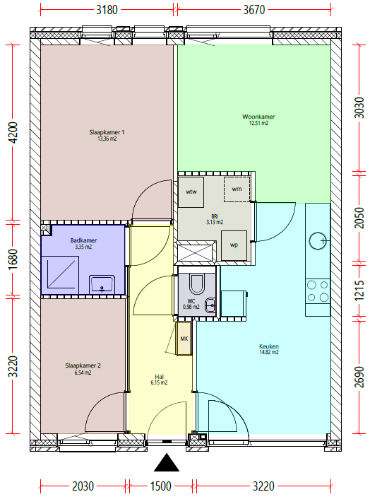 - 47 appartementen hebben 2 slaapkamers en zijn tussen 52 tot 58 m². Bekijk een voorbeeld plattegrond. Let op: appartementen kunnen van elkaar verschillen.