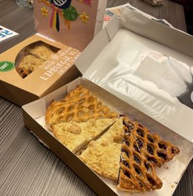 En terwijl onze medewerkers cadeaus uitdelen, is er in onze woonwinkel in Tilburg ook een erg attent bedankje afgegeven door een huurder. Een bedankkaart en lekker gebak, als dank voor ruim 40 jaar woongenot. Daar doen we het voor.
