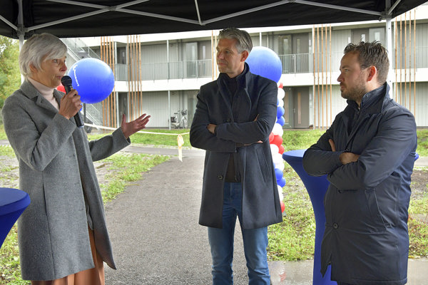 Wethouder Arjen van Drunen (wonen): “Fantastisch dat we weer 123 mensen een betaalbare woning kunnen bieden. Deze woningen staan voor meer dan alleen een dak boven het hoofd. Het biedt jongeren, starters en statushouders de kans op eigen benen te staan en een toekomst op te bouwen. En dankzij de inrichting van het complex, de gezamenlijke huiskamer en gezamenlijke activiteiten komen bewoners makkelijker met elkaar in contact zodat ze er niet alleen voor staan.”