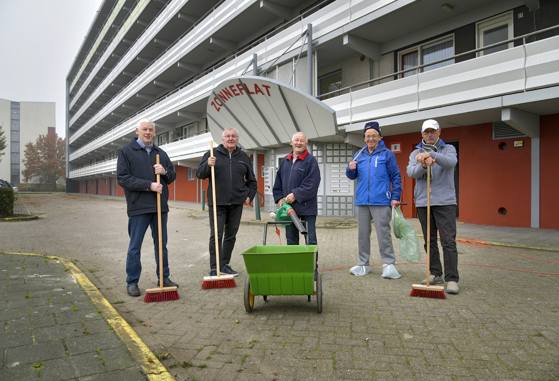Ruim twintig jaar geleden kwam een buurtbewoner met het idee om een veegploeg te starten. Nico schreef zich meteen in. “De eerste keer versliep ik me”, vertelt hij lachend. Maar na al die jaren is hij nog steeds actief lid. Iedere tweede vrijdag van de maand lopen ze een rondje rondom het flatgebouw. “We komen echt de gekste dingen tegen: van onderbroeken tot aanstekers en handdoeken”, vertelt Nico. “We kwamen er al snel achter dat wanneer er ergens rommel ligt, er alleen maar meer bijkomt. Als je zorgt dat er geen rommel ligt, komt er dus ook minder bij. Daarom houden we het schoon met onze veegploeg. Dat maakt het wonen hier nog fijner.” De veegploeg is voor Nico ook een sociale activiteit. “Na het vegen en afval prikken drinken we koffie. Het is ook een moment om onder de mensen te zijn en bij te kletsen.”
