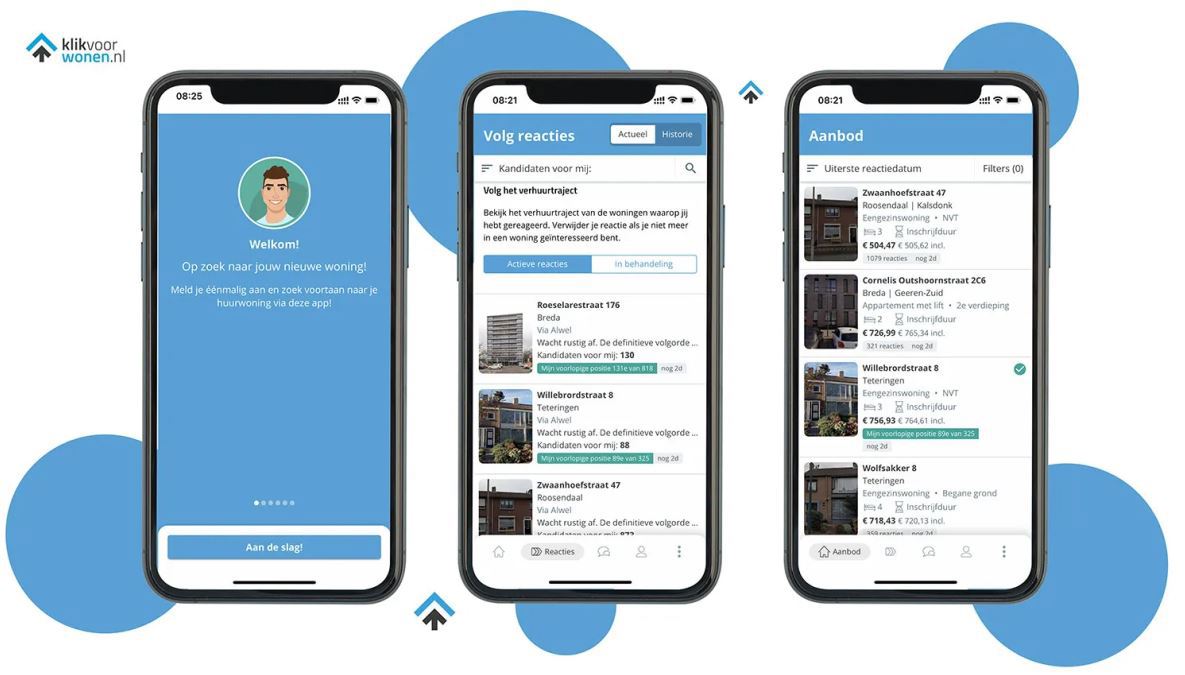 Het bekijken van het aanbod en het volgen van reacties is daarmee nog makkelijker. Met de Klik voor Wonen app kun je: