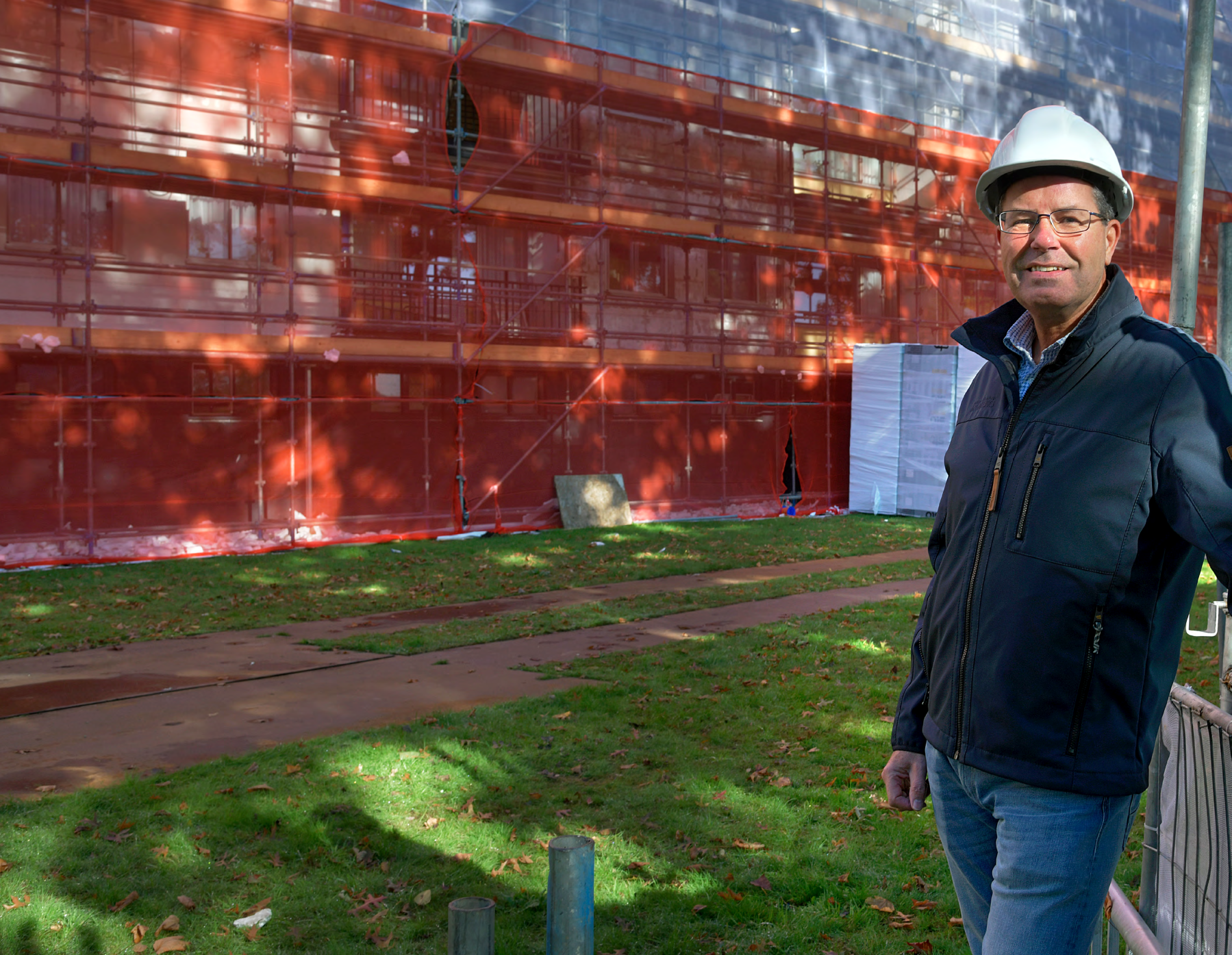 “De flat krijgt een soort warme winterjas”, legt Rob uit. “We pakken de buitenkant helemaal in met isolatie en voorzien het gebouw van nieuwe materialen. Daardoor ziet het er straks ook van buiten weer fris en modern uit.”