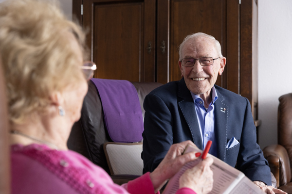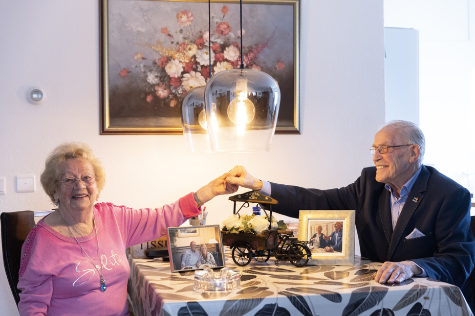 Als twintigers trouwden Ad en Joke. Maar beiden verloren hun partner. Ad werd in 1998 weduwnaar, Joke in 2010 weduwe. Het zorgde voor veel verdriet, maar de zon ging weer schijnen. Ad vertelt: “Op een dansavond kwam ik in 2014 een prachtige vrouw tegen. Joke. We praatten, dansten volop en wisselden telefoonnummers uit. Niet om te appen, maar om te bellen! Al snel was duidelijk dat we elkaar méér dan leuk vonden en kregen we verkering.” In september 2022 verhuisde Ad naar een gelijkvloerse woning aan de Paduastraat. Joke: “Ad vroeg of ik hier wilde komen wonen. Ik wilde wel, maar wilde mijn vertrouwde huis niet verlaten. Maar ja, ik word ook ouder en alles op één etage is ook wel fijn.”