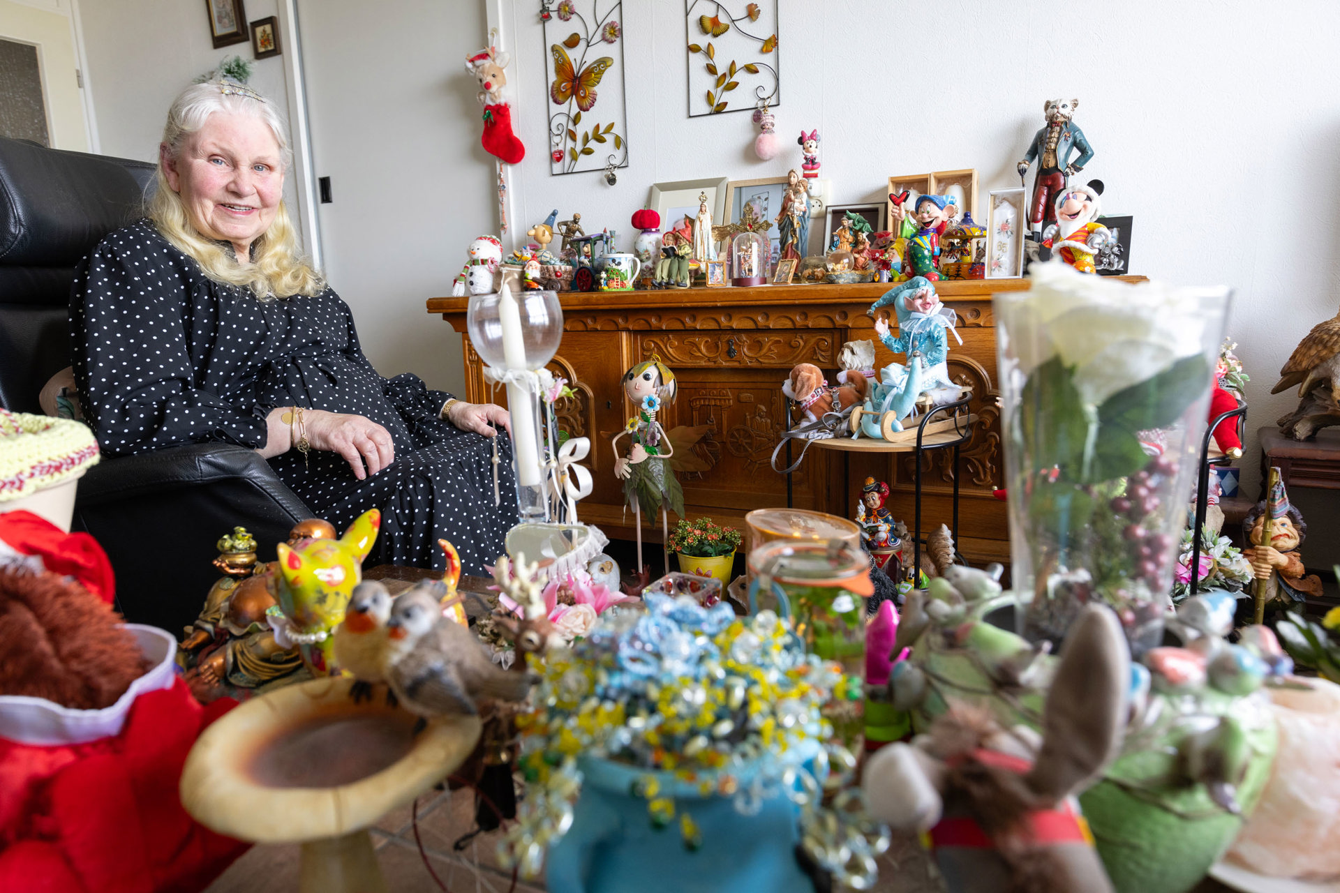 Ingrid (74) heeft muizen in haar huis op acht hoog, maar die zorgen niet voor overlast: het zijn namelijk beeldjes van Mickey en Minnie Mouse. Ze krijgen goed gezelschap van andere figuren uit de Disney-familie. Zoals olifantje Dombo en natuurlijk Donald Duck.