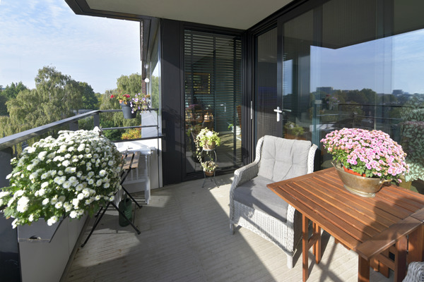 De woning ademt geschiedenis en bijzondere verhalen, met erfstukken die al generaties lang in de familie zijn. Zoals de sarong van Jimmy's oma, die een bijzondere plek heeft in de slaapkamer, of de Delftsblauwe vazen en viool aan de muur in de woonkamer. En op meerdere plekken in de woning vind je schilderijen, geschilderd door oom Rinus. Vanaf het balkon op vier hoog kijk je uit over de skyline van Breda met de Grote Kerk, de Koepelgevangenis en het reuzenrad bij het Breepark. “Toen we deze woning voor het eerst bezochten, werden we meteen verliefd op het uitzicht”, vertelt Mientje. “Met en balkon op het zuiden is het hier heerlijk in de zomer. En we hebben een prachtig uitzicht op het vuurwerk met oud en nieuw. Eerlijk gezegd willen we hier niet meer weg.”