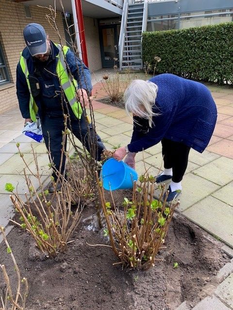 Ook de bewoners van “de ir. Lelyhof” hebben nu twee boompjes op hun binnenplaats.
