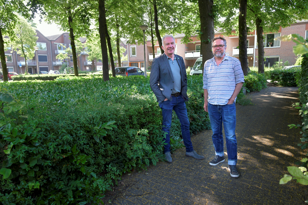 Dat de buurtfunctie nu tóch blijft bestaan, is mede dankzij het lef van WonenBreburg, benadrukt Ralf Embrechts (links op de foto) van MOM Tilburg. “Ze hebben hun nek uitgestoken door goed te luisteren naar de buurt. En zorgvuldig te kijken naar wat er al is.”